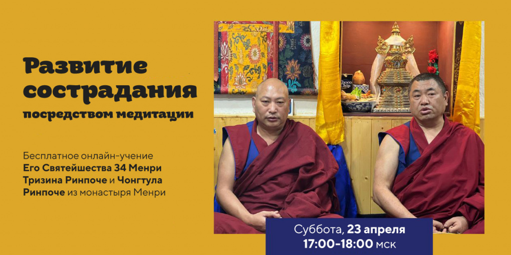 23 апреля 2022: «Развитие сострадания», учения с Его Святейшеством 34 Менри Тризином Ринпоче и Чонгтулом Ринпоче