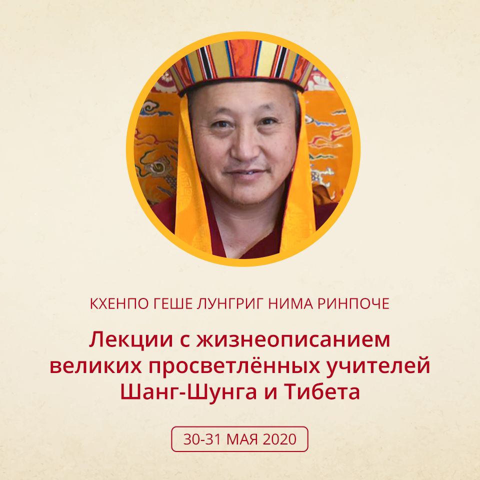 30-31 мая 2020 Кхенринпоче Лунгриг Нима будет давать наставления о жизнеописании 24 Достигших Тела Света устной линии передачи Великого Совершенства из Шанг-Шунга. Кхенпо также дарует жизнеописания великого наставника Дренпа Намка, который проявился в период учений речи Тонпа Шенраба, царя среди просветлённых, а также владыки добра и мудрости Гонзо Ченпо и Всеведающего Наставника Шардзы.