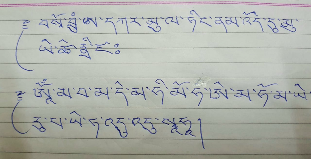 Это мантра Цеванга Ригдзина — СО ДРУМ АКАР МУЛА ТИНГНАМ ОДУ МУЙЕ ЦЕНРИ ЦЗА и мантра Шераб Джаммы — ОМ МАВЕ МАДЕ МАХИ МОХА ЭМАХО МАЙЕ РУПА ЙЕТА ДУНДУ СОХА.