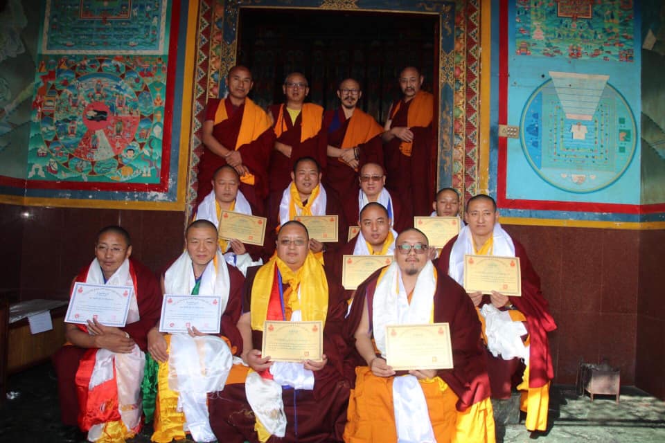 В этот знаменательный день восемь монахов отпраздновали выпуск из Гомдра (школы медитации), и еще двое монахов завершили трехлетнее специализированное обучение Дзогчену и Тантре.